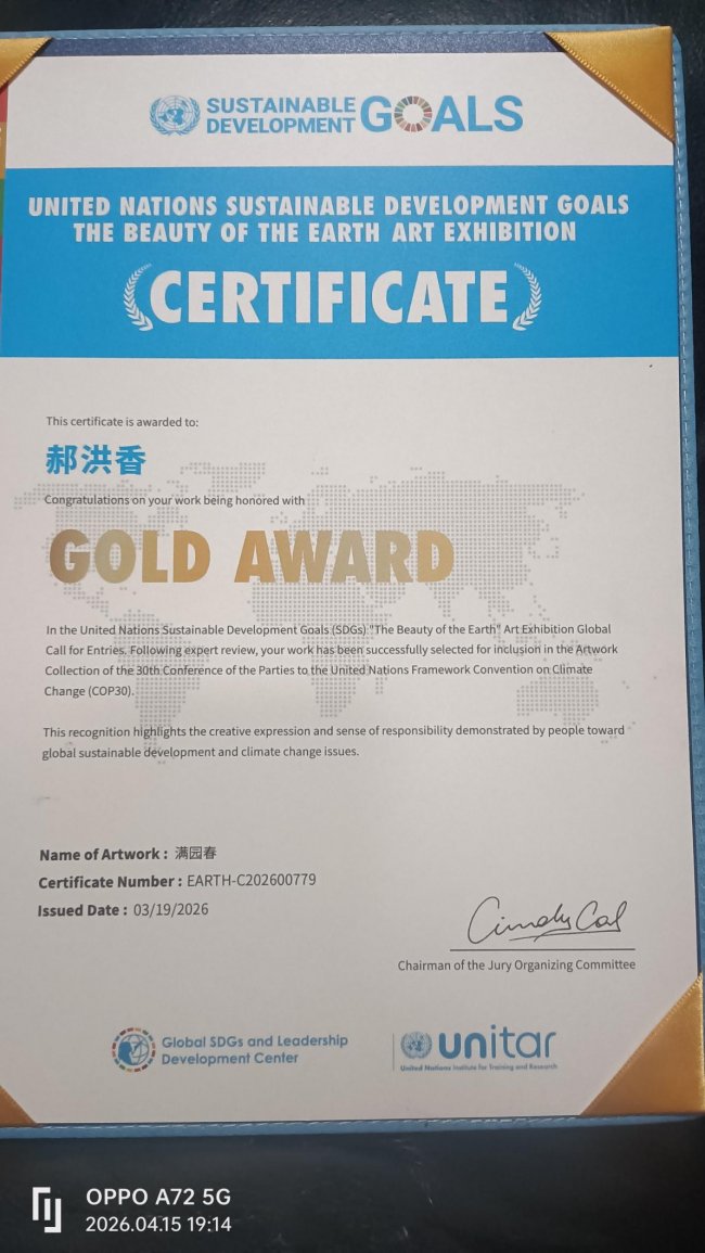 图为郝洪香获奖作品(满园春)