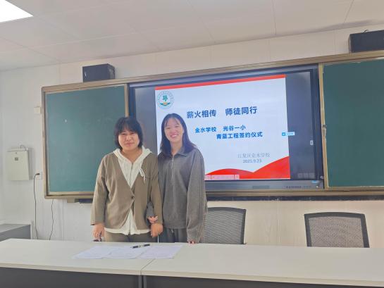 在“青蓝工程”签约暨校际结对仪式上,光谷一小三位骨干教师与金水学校五位新进青年教师签订师徒协议。光谷一小陆文艳校长和金水学校曾建国校长分别讲话,明确三位师父“教学指导、教研共进、经验传承”职责,通过“以老带新”促进五位新进青年教师快速成长。