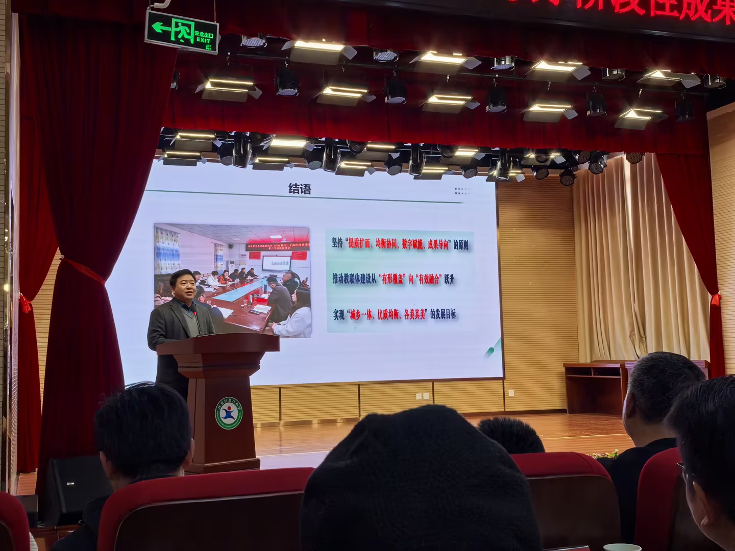 报告厅内,两场专题视频生动再现了联合办学的创新实践:东湖路学校教联体的“双师课堂”实现七校同步教学,打破了城乡教育时空壁垒;一小教联体的观课议课改革,推动教研从“评判”走向“研究”,为教师成长注入新动能。经验交流环节,高杨分享的新教师 "首站式培育" 模式、杜秋梅阐述的 AI 赋能教学路径等 6 个典型案例,涵盖师资培养、技术融合、学科突破等关键领域,为教联体建设提供了可复制的实践样本。随后,三大教联体负责人分别汇报了年度工作成效与发展规划。 西片学区长在总结中指出,2025 年学区通过教联体平台实现优质资源辐射12 所成员校,开展跨校教研28 场,教师交流轮岗32人次,城乡教学质量差距较上年缩小15%。区教育局党委委员郑超在指导讲话中强调,要深化“共融共生、共建共享”机制,以师资共培、课程共研、文化共兴为抓手,持续推动义务教育优质均衡发展。