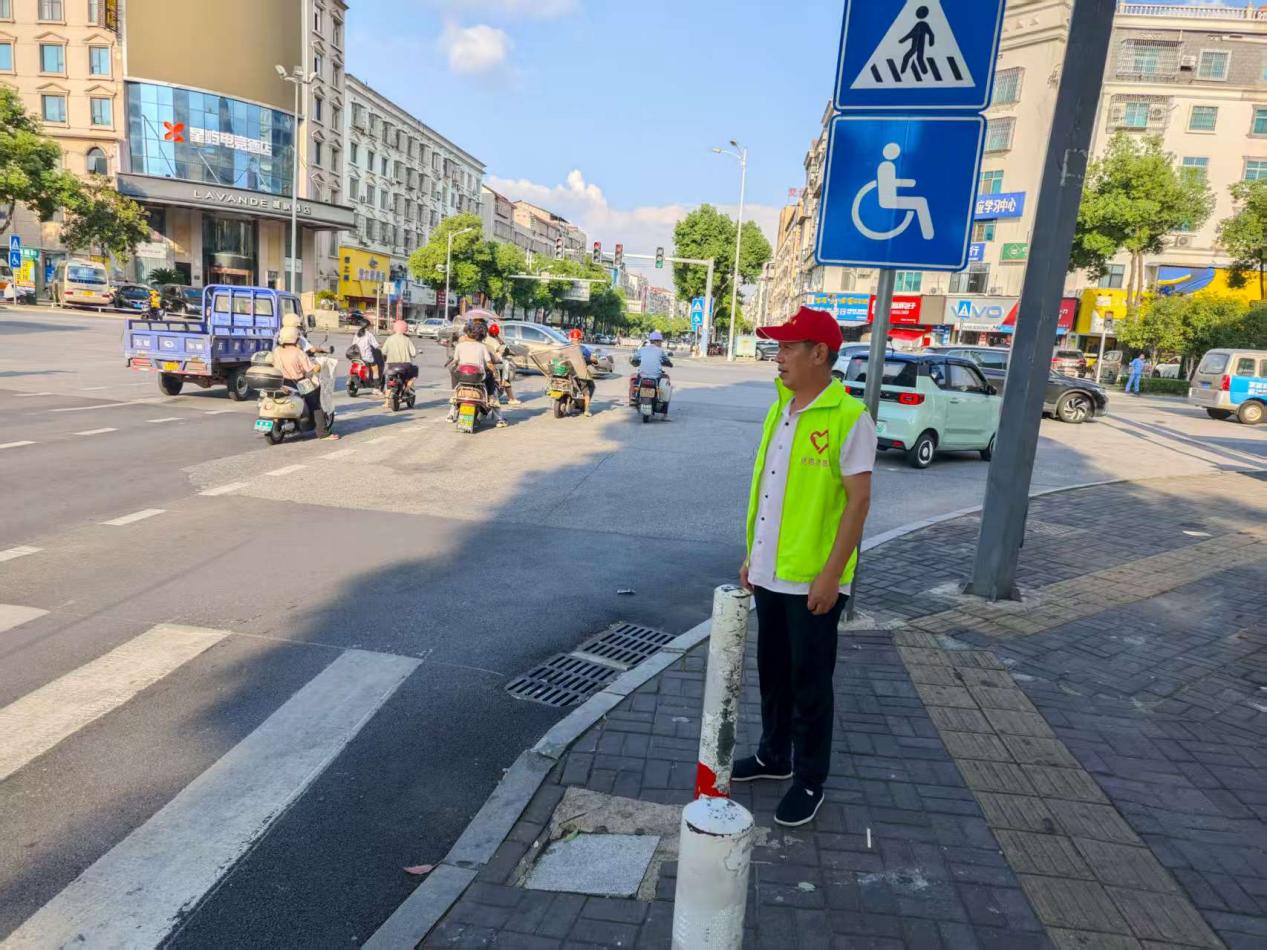 从2025年6月24日到8月26日,岳阳市贤因公益协会组织会员,在岳阳楼区武装部十字路口开展了为期64天的交通文明劝导专项志愿服务。该路口地处青年东路与通海线南路交汇处,是周边居民日常出行、学生上下学及单位通勤的核心节点,此前高峰时段常因人流车流交织,面临通行效率低、安全隐患大的问题。此次专项志愿服务通过科学部署与细致行动,有效改善了路口交通秩序,为市民出行筑牢了安全屏障。志愿服务期间,该协会精准制定“错峰值守+动态调整”工作机制,聚焦早晚出行高峰:每日7:30-8:30、17:30-18:30,志愿者们身着统一标识服装准时到岗,分工明确开展服务--或引导非机动车规范停放,杜绝占道影响通行;或护送行人走人行横道,尤其关注老人、学生等群体;或协助疏导机动车有序通行,及时化解拥堵苗头。遇到雨天、节假日等交通压力骤增的特殊情况,协会还临时增派人手,加强路□周边安全巡查,同步清理路面杂物,全力保障道路畅通。除基础劝导外,志愿者们还主动化身“交通安全宣传员”。在服务过程中,他们耐心向过往居民讲解闯红灯、逆行等交通违法行为的危害,针对老学生群体,用通俗易懂的语言普及“安全过马路“、“骑行电动车要佩戴头盔”等常识,让交通安全理念真正走进市民心里。