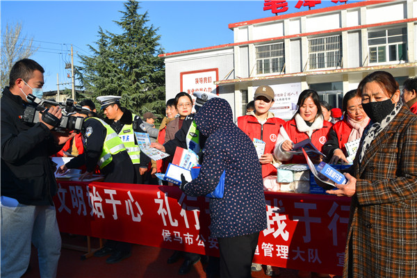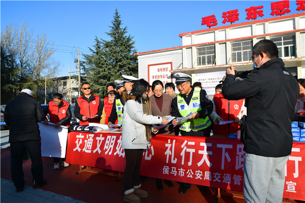 12月2日是第13个全国交通安全日,今年的主题是“文明交通,你我同行。”在这个寓意着守法规、知礼让的特殊日子里,侯马市交通管理大队、高速民警、路东街道办事处和新民巷社区联合侯马市新时代文明实践文艺轻骑兵团队共同开展一场交通安全宣传服务活动。