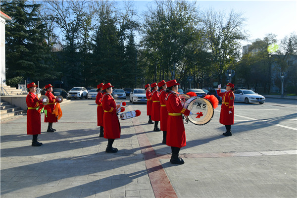 大家首先在市委礼堂前给过往行人发放交通安全宣传单及礼品盒、抽纸等。同时,军乐鼓队献上了一场精彩纷呈的表演,吸引了众多的过往行人驻足观看和领取交通安全宣传单,观看了交通安全宣传板报。将“一盔一带”、“不闯红灯”、“拒绝酒驾”等交通安全知识以更加生动、有趣的形式深入人心。以通俗易懂的方式传递了文明出行理念,让新时代文明实践工作更接地气、更有实效。