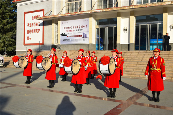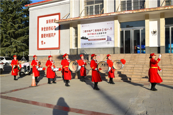 桥乡鼓舞队队长席玉惠指挥:军乐鼓表演