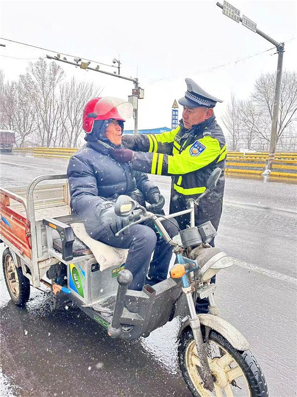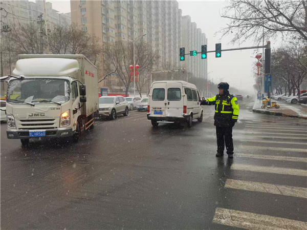 “加大巡逻频次,及时提醒过往车辆减速慢行”“在易结冰路段设置警示标识,引导车辆安全通过”“优先保障行人过街安全,做好人车分流”,郭昊副局长都反复叮嘱执勤民辅警,既要严格规范执法,又要热情服务群众,全力保障恶劣天气下的道路交通安全。