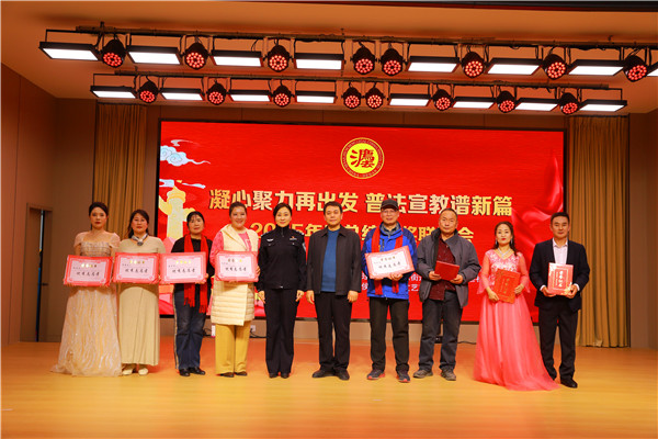 活动现场对在一年来的活动中表现突出、作出出色贡献的文艺团队进行了隆重表彰。隆重表彰团队的优秀志愿者先进个人和先进集体。一年来,通过常态化培训、业务练兵,队伍的创作表演能力、法律素养和团队协作精神得到显著增强,团队建设日益坚实一支“招之能来、来之能演、演之有效”的文艺普法轻骑兵队伍愈加成熟,表彰树楷模,星光映初心!隆重的颁奖环节将活动推向高潮。大会依次颁发了普法先锋奖,授予在普法一线表现突出、深受群众喜爱的表演与创作骨干。创作传播奖,表彰在内容、形式、传播手段上大胆创新、效果显著的队员敬业奉献奖,致敬在幕后保障、组织协调中默默付出、任劳任怨的团队成员最佳团队协作奖。奖励在重大活动中配合默契、攻坚克难的搞笑小组作品。每一份证书、每一座奖杯,都凝聚着汗水与智慧,承载着肯定与盼望。获奖代表在发言中分享了深入基层普法的感人故事,以心灵表达了继续扎根生活、服务群众,用文艺点亮法治明灯的坚定决心。