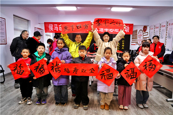 春联纸、大福字、墨汁、红围巾等活动材料,由爱心企业侯马市新裕房地产开发有限公司捐赠。