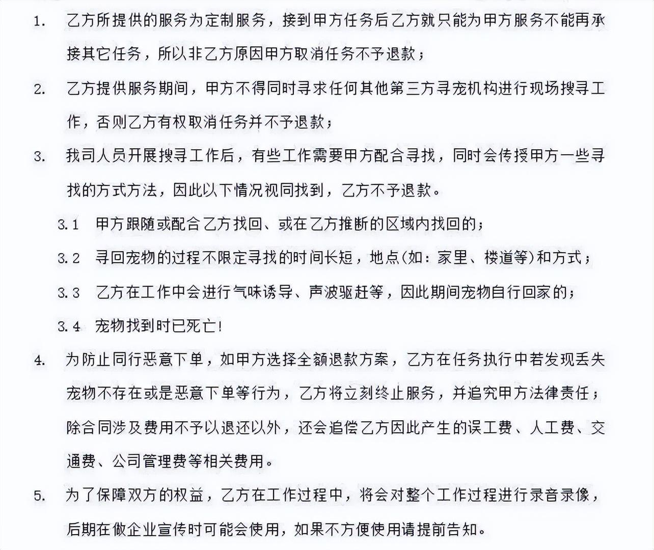 宠物主质疑高价寻宠团队服务敷衍、合同条款模糊引纠纷