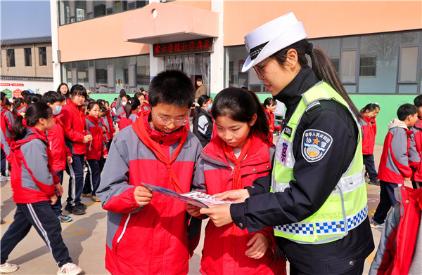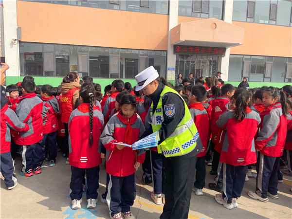 活动在热烈的开学氛围中拉开帷幕。侯马市交管大队的民警们为学生们发放了交通安全宣传单,并现场讲解交通安全知识,结合学生出行特点,重点强调了遵守交通信号、安全骑行、文明行走的重要性,引导孩子们“知危险、会避险”,养成文明出行的好习惯,争做交通安全的小小宣传员。