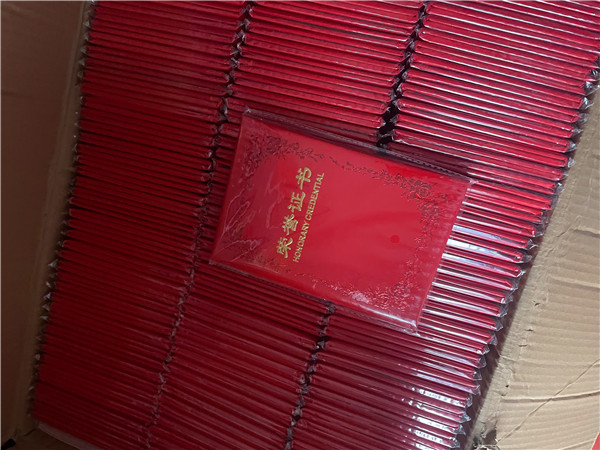 侯马市新时代文明实践文艺轻骑兵团队总管理于妮妮个人捐赠150本荣誉证书