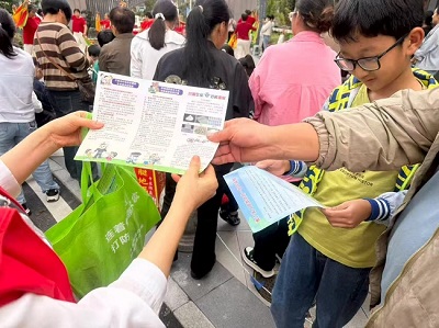 中媒法治公益在线安徽讯(通讯员:高建国 曹美玲) 正值双节来临之际,安徽省界首市颍南街道办事处禁毒办在辖区各小区内举办“小手拉大手”禁毒宣传互动活动,受到群众一致好评。