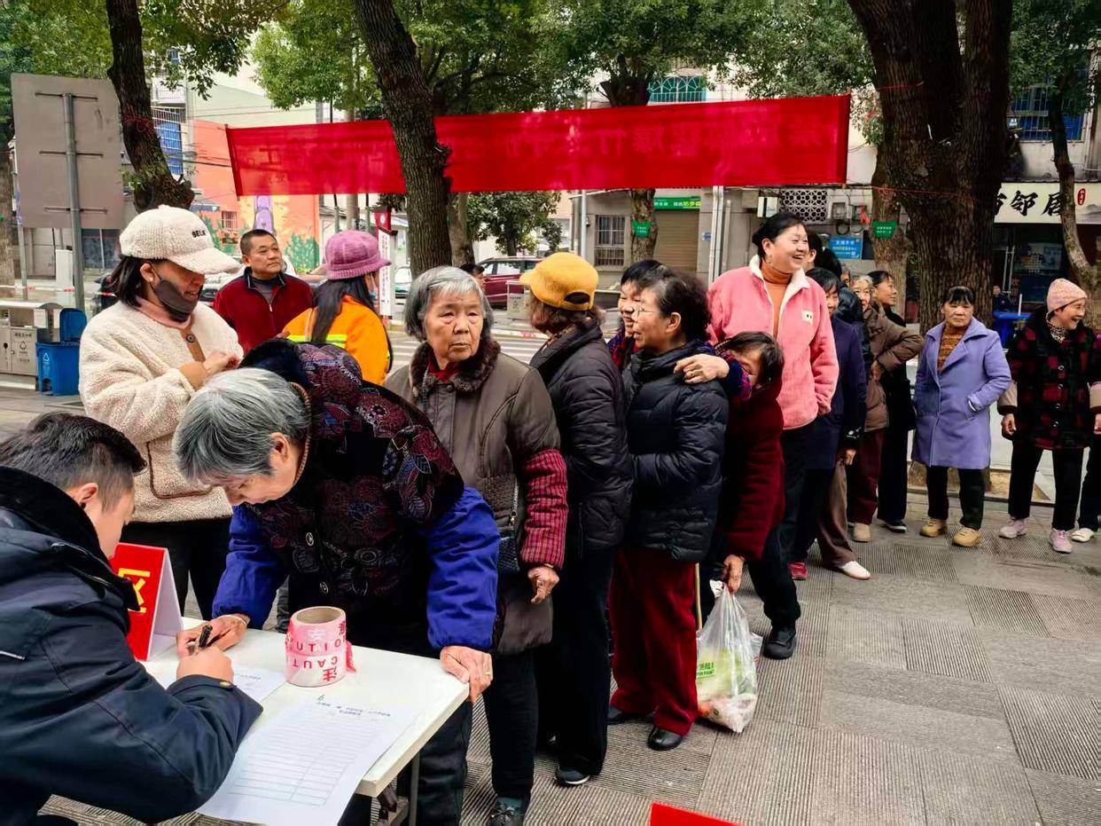 活动现场设置了投球挑战区,老人们手持篮球,站在指定线外瞄准蓝色水桶投掷,现场不时响起喝彩与欢笑声。活动规则颇具心意:只要参与投球,就能获得柚子一份;投中3个球可领取洗手液、洗衣液、84消毒液等健康礼品;投中5个球则能收获中国结、对联、挂历等新年礼品。老人们各展身手,有的精准投中赢得礼品,有的虽未投中也收获了参与的快乐,手中的柚子和礼品让大家脸上洋溢着幸福的笑容。