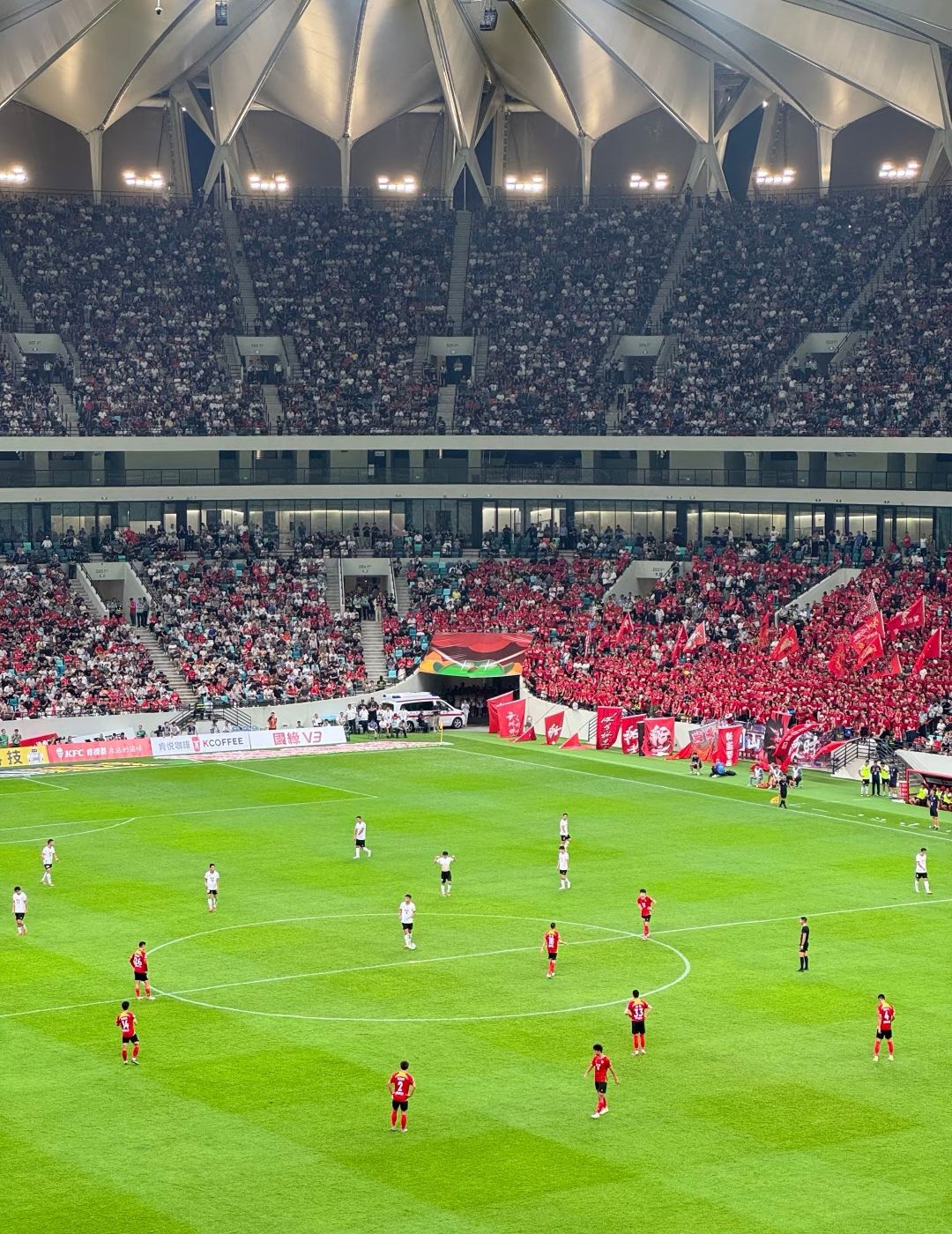 苏超赛场战云烧,呐喊如潮破九霄。