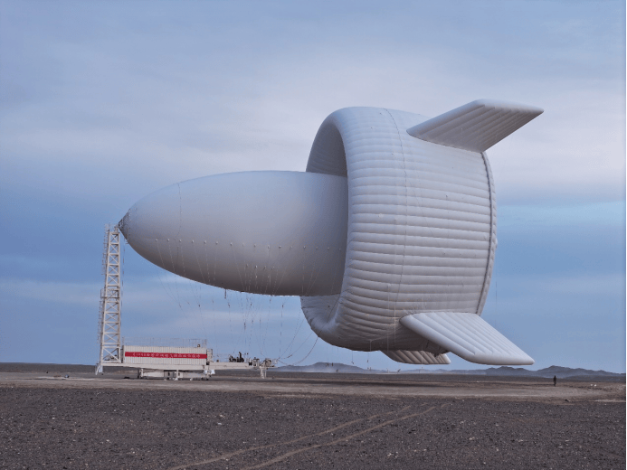 S1500长60米、宽40米、高40米,外形酷似飞艇,设计功率1兆瓦,其主气囊与环翼形成巨型涵道,搭载12套100千瓦发电机组,利用高空稳定强风驱动叶轮,再通过系留线缆将电能稳定输送至地面,是目前世界上最大的浮空风电装置。