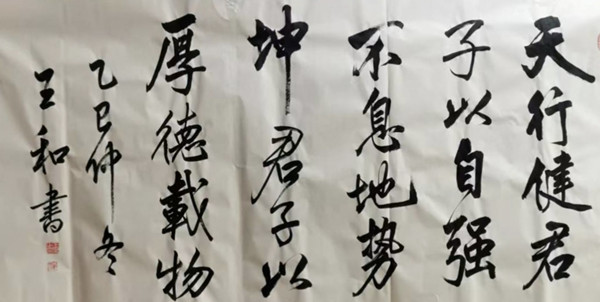 伉俪情深,王和老师的书法艺术不断提升与他的爱人周老师分不开,是周老师承担家务琐事才使得王和老师能有更多精力投入到书法艺术创造中。相信新的一年,王老师一定能在当代书法领域再创辉煌!