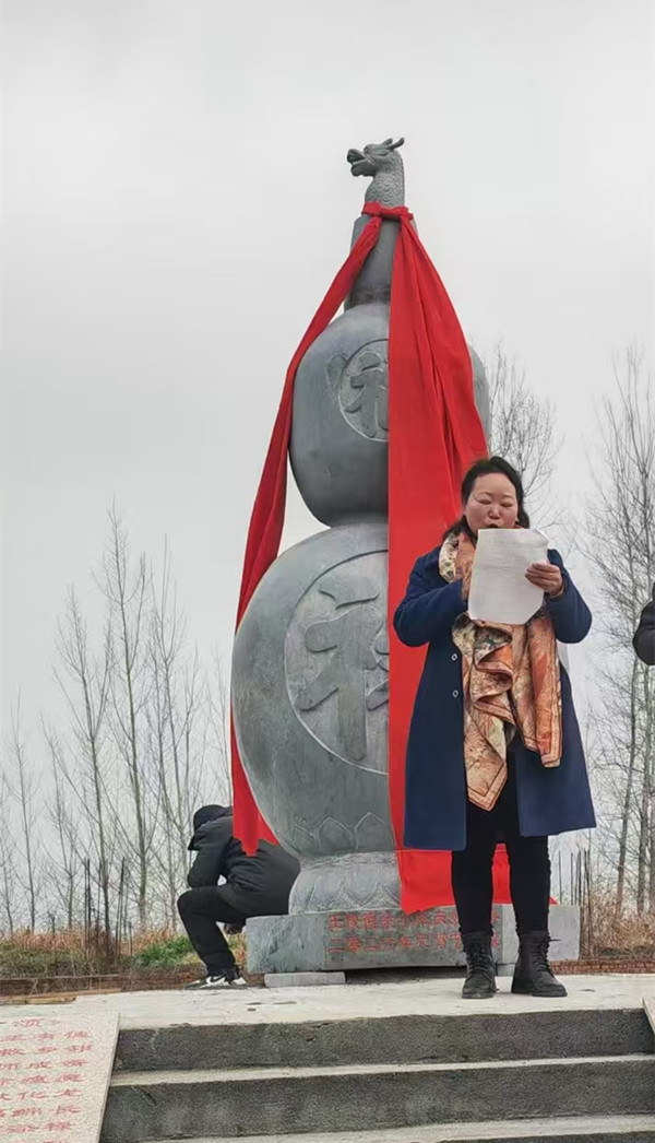 本网讯(特约记者李勤、武会娜报道)2026年3月4日,高3米、重达10顿的葫芦中的“巨无霸”“福禄玉葫芦”安放仪式在河南省平舆县仙翁庙隆重举行。在欢快的唢呐、激扬的擂鼓声中,在本村极有威望的主持人王福华先生的邀请下,从各地赶来的嘉宾兴致勃勃地走上“福禄玉葫芦”身旁,或即兴致辞,或有感而发,在慷慨激昂的言语中,既是对未来的美好祈盼,又是满满的祝福。