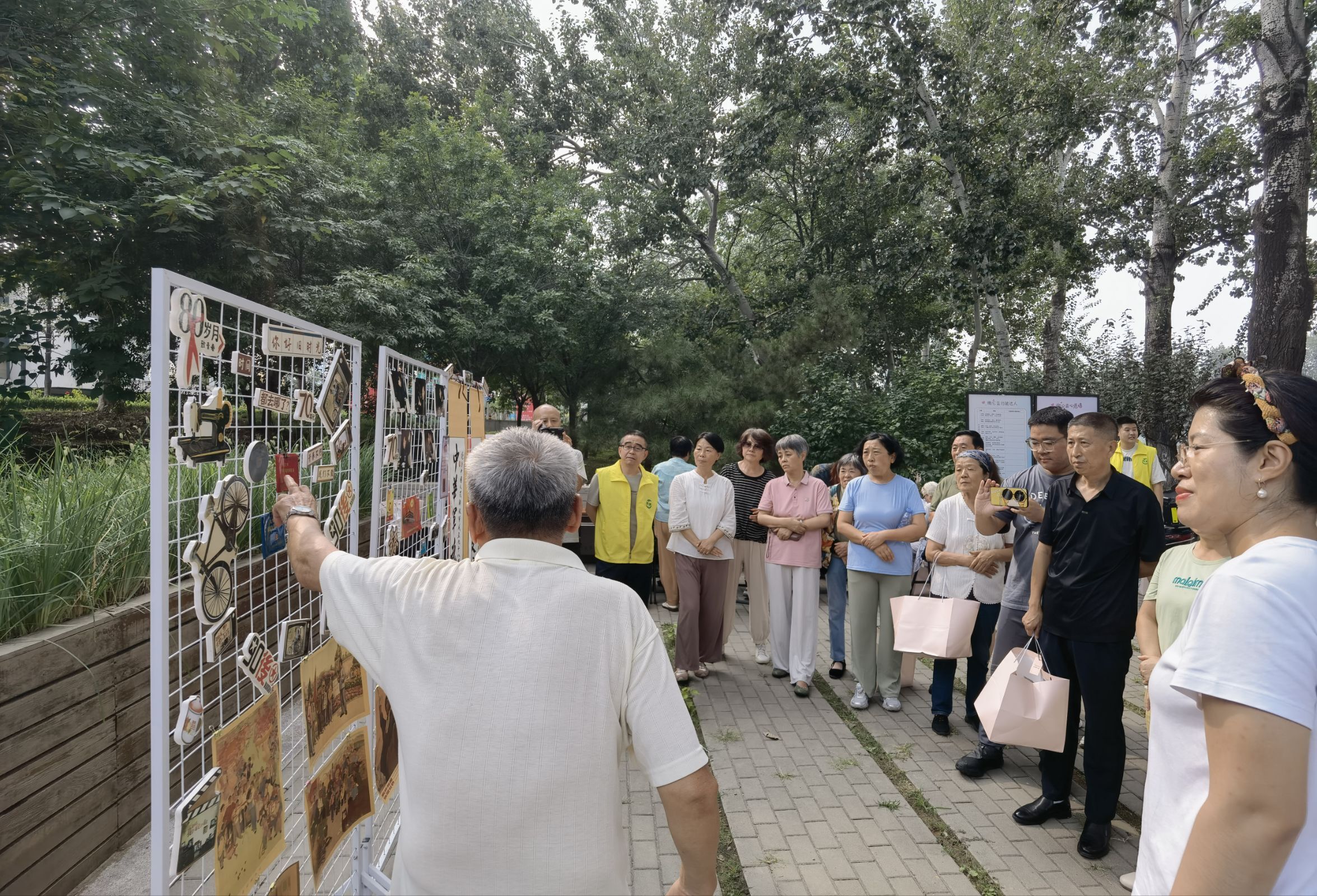 老物件展示:承载岁月故事,唤醒集体记忆。展示架上,老物件按“生活用具”“社区记忆”等类别分区陈列,老物件旁附有捐赠居民的姓名与简短故事介绍。居民刘云华带来庆祝新中国成立70周年画册、纪念中国人民解放军成立98周年字画等物件,并激动地跟大家分享自己的故事。居民武延年向大家介绍老照片中的1985年领导讲话,以及1997年东方大火现场情况,还有很多工作证件背后的故事。