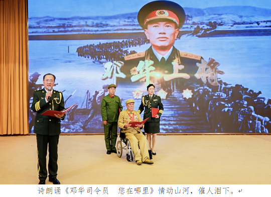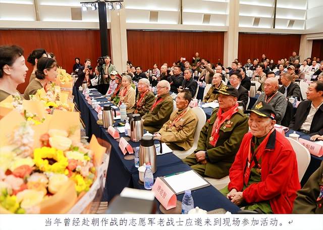 当年曾经赴朝作战的志愿军老战士王光明、纪明、冯志诚、周学陶、罗玉义、唐能智、徐霭贞、郑立冰、徐荣德应邀到现场参加活动。文工团员在热烈的掌声中向志愿军老战士敬献鲜花,表达崇高的敬意。