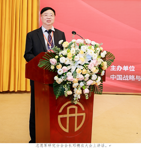 志愿军研究分会会长邓穗在大会上讲话,认真总结回顾了志愿军研究分会成立六年来的工作。他说,志研会始终把研究抗美援朝战争历史,弘扬传承志愿军精神,创新传播志愿军文化,积极开展社会公益活动作为宗旨和目标,做了大量的工作,开展了丰富的社会实践。我们坚持深耕抗美援朝战争历史,多次组织召开《抗美援朝 保家卫国历史与现实》高端学术研讨会;我们坚持激发崇尚英雄、致敬英雄的爱国主义情怀,紧紧围绕缅怀先辈、关爱老兵主题,开展了一系列社会公益活动;我们坚持开展缅怀英烈、清明祭奠活动,使祭奠志愿军烈士活动形成了规模和制度;我们坚持开展“传承志愿军精神”文化传播活动,取得了良好的社会效果。先后创办了四个艺术团,创作排演了一系列歌舞合唱节目;纪念抗美援朝战争胜利70周年书画展览,受到参观者的好评和称赞;我们成立了志愿军丛书编辑委员会,编撰出版了《志愿军老战士风采录》《致敬最可爱的人》图书;我们积极筹拍了抗美援朝题材的电影电视剧,参与了电视剧《跨过鸭绿江》、电影《志愿军·雄兵出击》研讨会;在新媒体视频号邓穗穗连续播讲志愿军故事73期,播放量(次)达200万,受到广泛好评。《志愿军精神宣传教育基地》建成并对外展览,全年接待观众70多批,约5000人次;丹东志愿军家书博物馆筹建完成,即将开馆;志愿军精神宣讲团影响广泛,成效显著,宣讲团成员足迹遍布大江南北,分赴机关、部队、院校、企业,赢得广泛赞誉;我们还积极开展社会公益活动,为志愿军老兵、志愿军烈士后代服务,前不久,我们还在四川省德阳市中江县黄继光烈士家乡启动了“崇尚英雄,关爱老兵”慰问活动,给志愿军老战士送温暖、送关怀、送健康;志愿军烈士后代联谊中心还积极地开展为烈士后代寻亲活动,为英雄魂归故里,烈士找到亲人做了大量的工作。我们所做的这些工作,就是为了在新时代光大志愿军英雄形象,传承抗美援朝精神,使抗美援朝精神日益成为中华民族千年赓续的浩然之气。