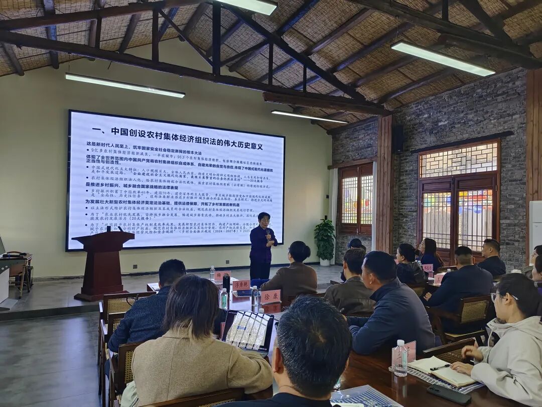 研修营特邀中国社科院社会学所研究员杨团、中国人民大学农业与农村发展学院教授仝志辉等权威专家,围绕《农村集体经济组织法》开展专题授课。杨团以《发展农村集体经济的机遇》为题,深入解读法律精神与政策内涵,强调集体经济组织作为市场主体的法律地位与经营权限;仝志辉则系统梳理《农村集体经济组织的由来与发展路径》,结合全国典型案例,为基层干部厘清方向、提振信心。