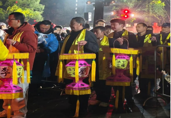 21:00,化灯仪式将晚会推向高潮。十盏添丁灯的捧灯人整齐列队,将灯火投入瓦塔,人丁火种与兴旺之火交融升腾,烈焰蓬勃,照亮夜空。这一刻,乡愁与祈愿在火光中交融,温暖了每一个在场的人。