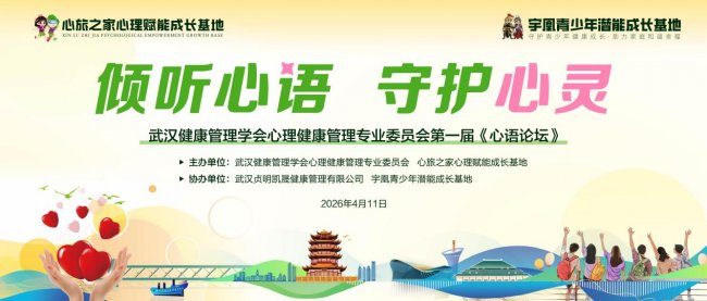 2026年4月11日,武汉。由武汉健康管理学会心理健康管理专业委员会主办、心旅之家心理赋能成长基地承办、宇凰青少年潜能成长基地协办的第一届“心语论坛”——《倾听心语,守护心灵》,在心旅之家基地成功举办。来自全国各地的心理健康领域专家学者、精神科与心理科专家、教育工作者、行业从业者及学生家长代表近百人齐聚一堂,围绕“融合与创新:构建青少年心理健康教育发展新生态”主题,深入交流,凝聚共识,共同见证心旅之家和宇凰基地赋能青少年心理健康服务体系的专业价值与行业高度认可。